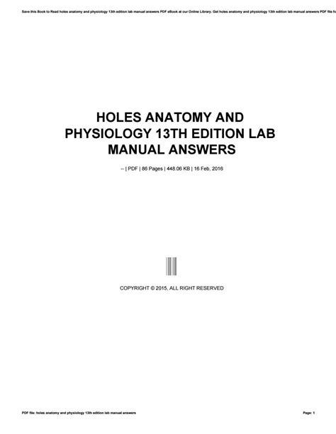 Read Online Answers For Holes Anatomy Lab Manual Ebook PDF online is a convenient and frugal way to read Answers For Holes Anatomy Lab Manual Ebook you love right from the comfort of your own home. Yes, there sites where you can get PDF "for free" but the ones listed below are clean from viruses and completely legal to use.